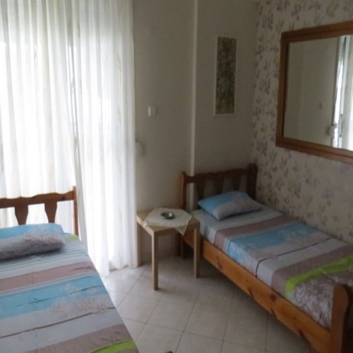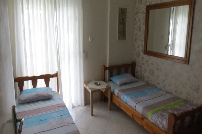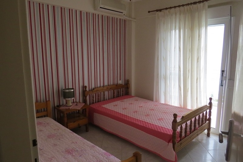 Апартман бр.8 се наоѓа на третиот кат , има еден брачен кревет во посебна соба и два единечни во дневниот простор, во истата просторија е кујната опремена со голем фрижидер и мини шпорет со релна, климата и ТВ, тераса.